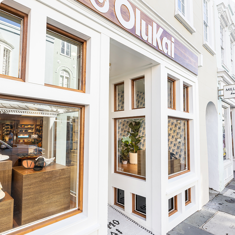 Set along Charleston’s historic King Street, the OluKai storefront respectfully preserves the building’s original facade, honoring the city’s architectural legacy. While continuing to uphold the space’s historical aesthetic, we added an additional layer of warmth through the use of locally sourced walnut trim, rooting OluKai to the city.