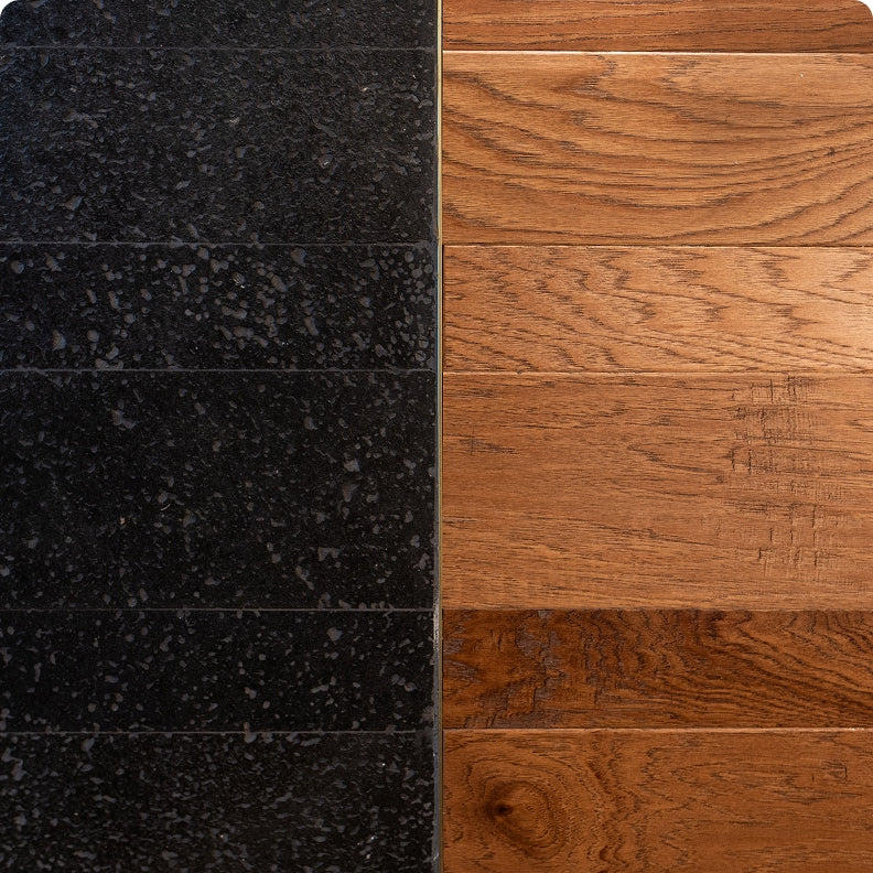 Basalt representing the cooled lava and the changed landscape, transforming into wood as the space progresses. Color palette inspired by the ulu, the ocean, and the slopes of Hualālai. Premium leather accents (seating)