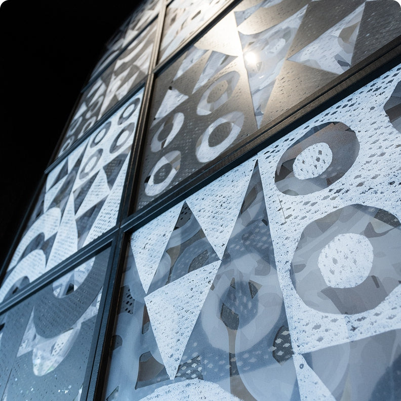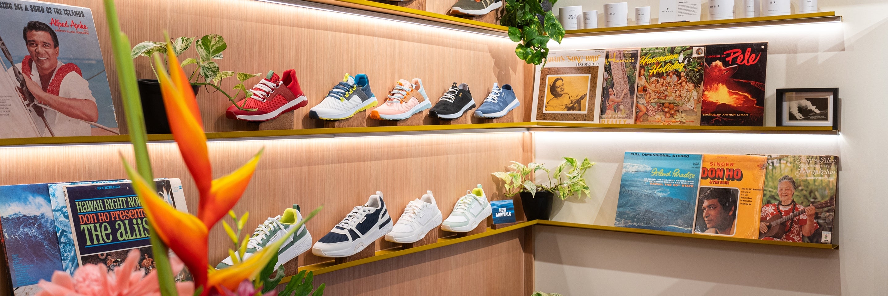 Hawaiian artist Herman Pi’ikea Clark is hanging proudly in the front of the store representing the concept of kīpuka or islands of regrowth that are surrounded by new lava flows. Literally “a place of life where culture endures”