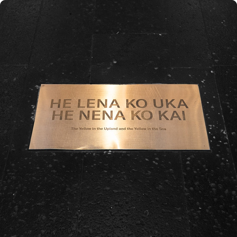 "He Lena Ko Uka, He Nena Ko Kai" “The Yellow in the upland and the Yellow in the sea” The engravings pay tribute to the Hawaiian tradition of entering a space with respect and positive intention. We invite you to talk story with our team to learn more about the meaning behind each statement.