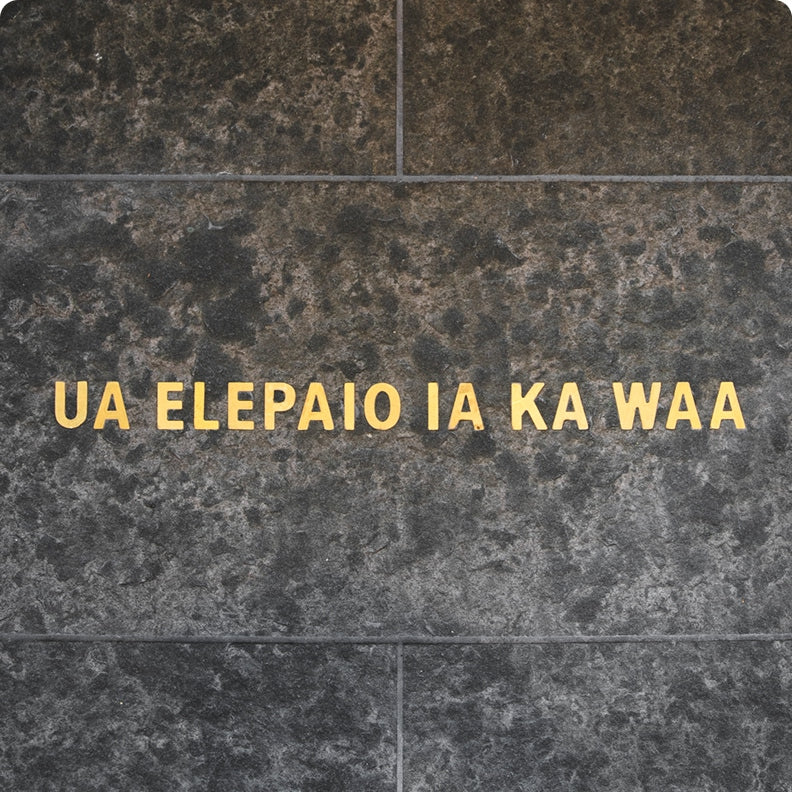 These engravings honor the Hawaiian tradition of entering a space with respect and positive intention. Each statement is unique and meaningful to its location. We encourage you to talk story with the team to understand the specific intent.