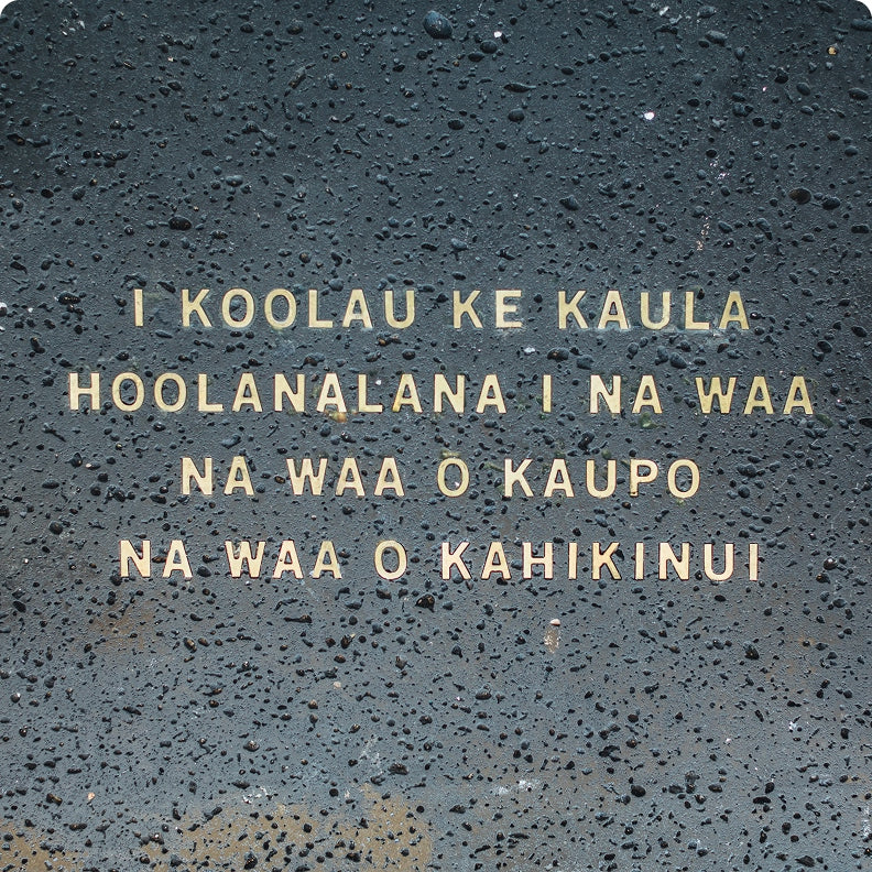 These engravings honor the Hawaiian tradition of entering a space with respect and positive intention. Each statement is unique and meaningful to its location. We encourage you to talk story with the team to understand the specific intent.