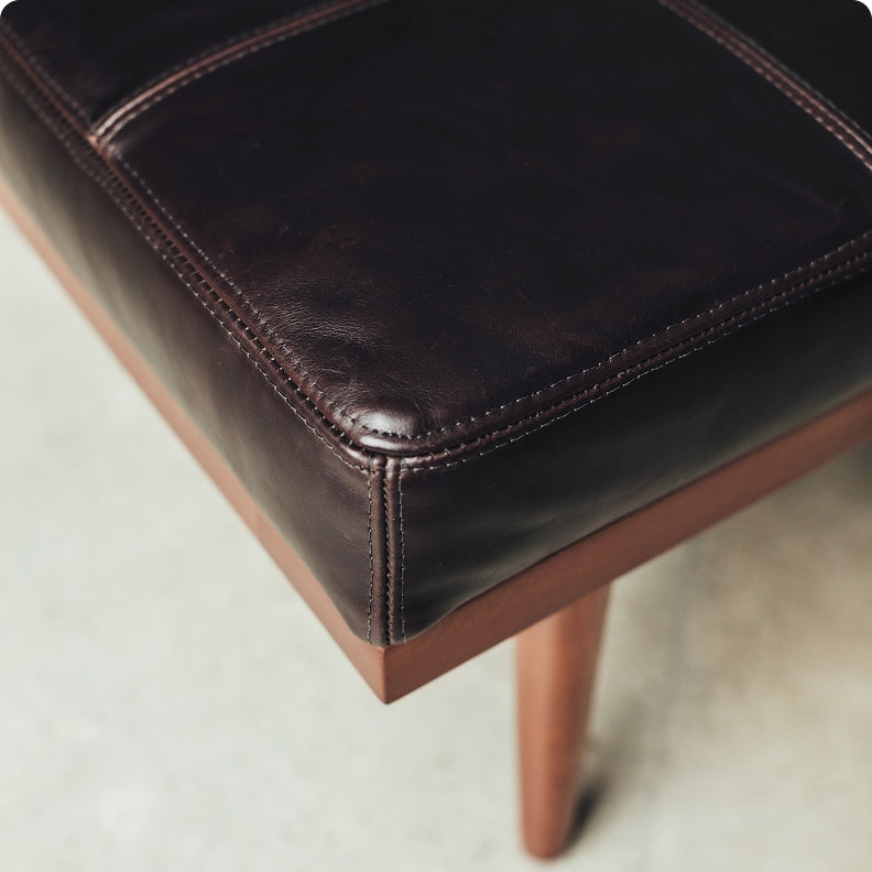 Made of the same high-character, premium leathers used in our footwear, we adorn benches and other touch points within the store to highlight its quality.