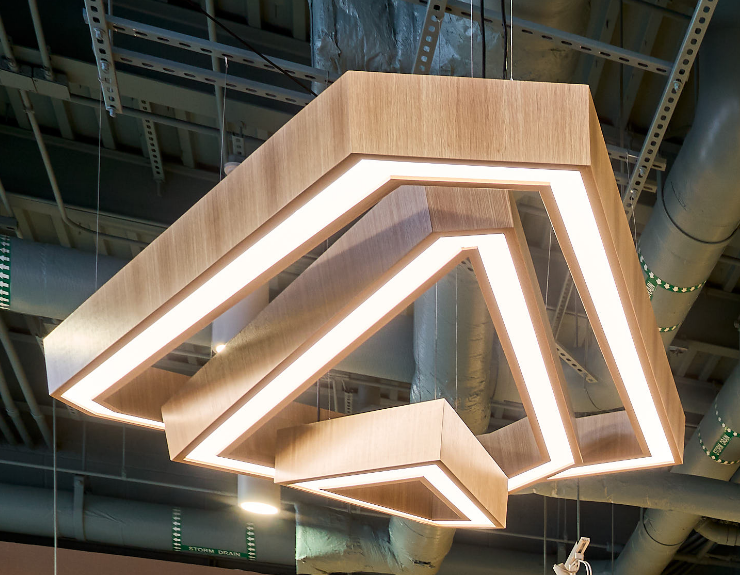 Our main feature in this store is the concentric overhead light that represents the source (kumu) of the spring. The reflection of the planter/seating below represents life in abundance.