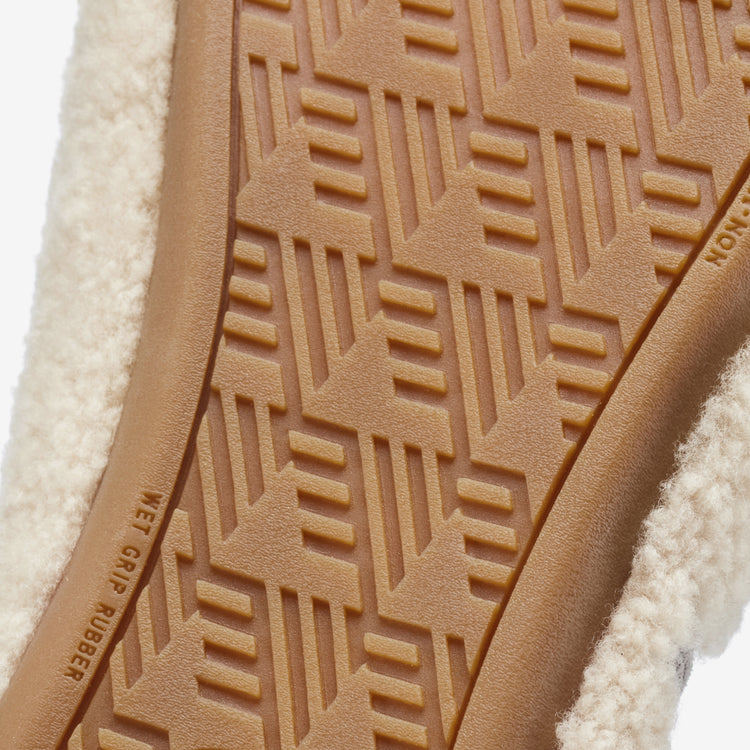 A fleece-wrapped single-density PU footbed creates a soft, supportive base for all-day comfort and warmth.