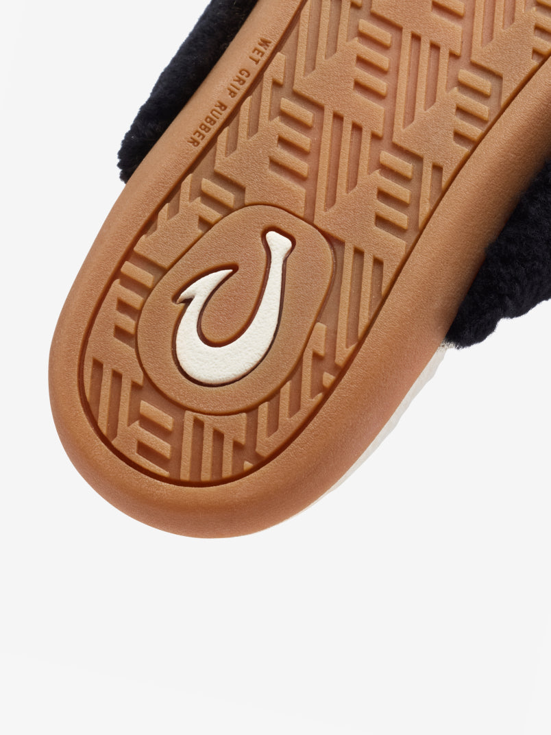 Whether you're lounging fireside or chilling inside, the Hale Mule is the definition of cozy comfort. Wrapped in genuine shearling with a fleece-lined interior, it brings instant warmth and softness to every step. It's finished with a refined leather binding and OluKai's signature hook detail.