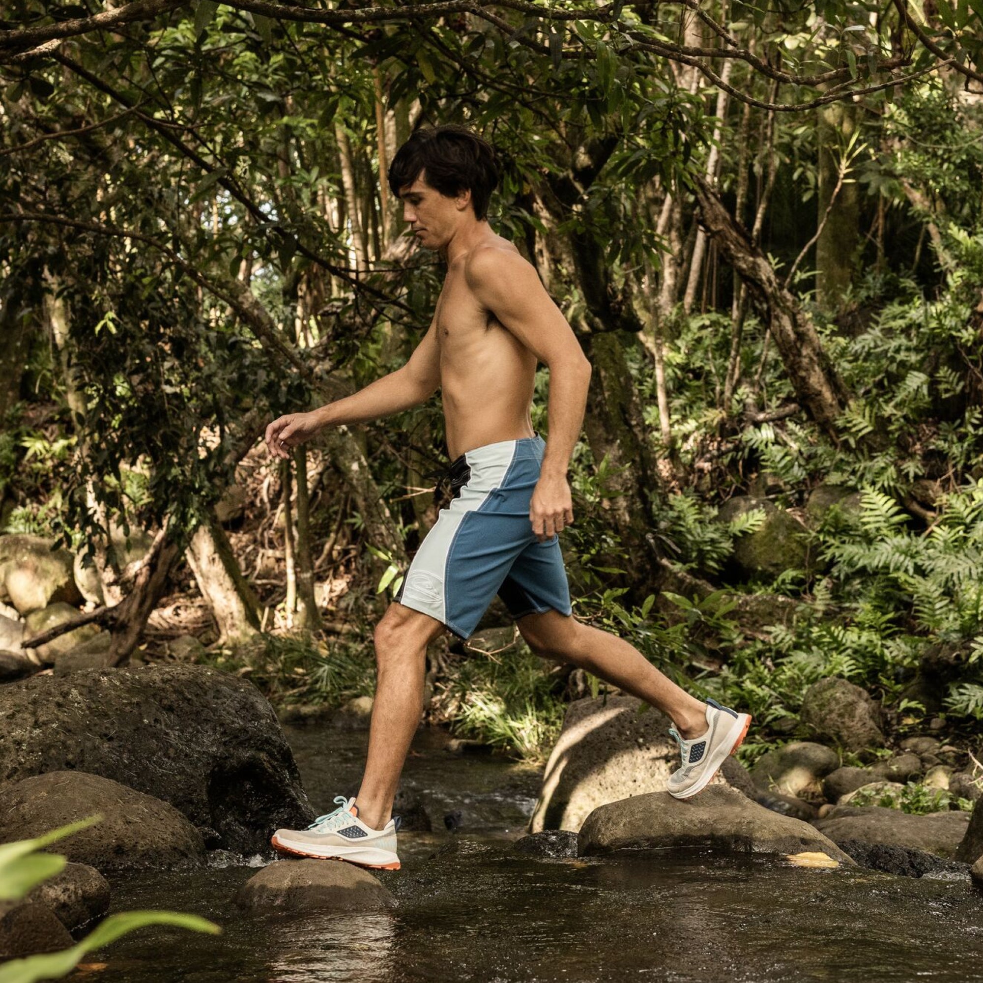 The Makiki’s sleek silhouette features water-resistant suede, mesh, and TPU overlays for added protection. Side panels reflect the organic curves of a natural journey.
