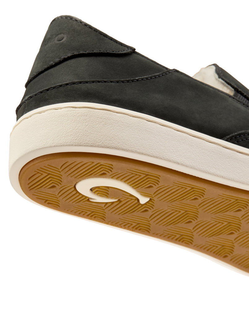Waterproof nubuck leather meets genuine shearling for a blend of durable function and cozy style. A debossed OluKai logo on the heel adds a touch of signature OluKai craftsmanship.