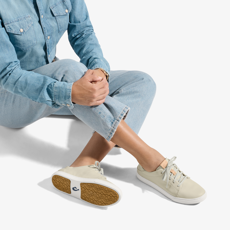 Discover the Pehuea Lī ‘Ili, an OluKai twist on the classic white leather court sneaker, enhanced with our Drop-In Heel® for versatile wear. This sneaker is meticulously crafted with premium full-grain leather and combines classic style with cutting-edge comfort. The outsole, inspired by the homebody nature of Hawai‘i’s butterflyfish, adds a unique island touch to this design. Whether you wear it as a sneaker or a slide, the Pehuea Lī ‘Ili is perfect for those who appreciate timeless style and comfort.